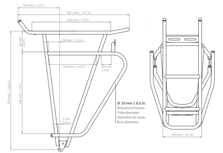 For installation compatibility, we recommend that the frame part be equipped with M5 screw holes on the upper rear fork and M5/6 screw holes on the lower rear fork, and that the disc brake mount be located on the lower rear fork. This setup avoids interference between the brakes and the rack.